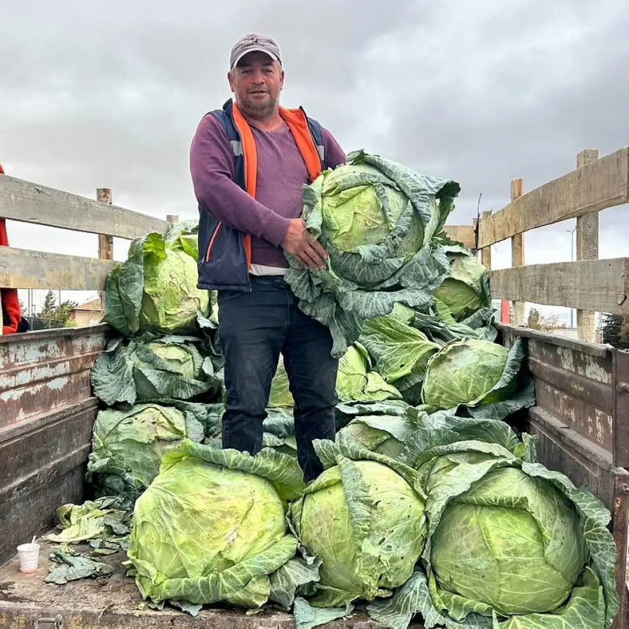 Kayseri'nin Tomarza ilçesine bağlı Şıhbarak Mahallesi'nde, herr biri 40 kilograma kadar ulaşan dev lahanaların hasadına başlandı.