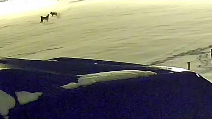 Son yılların en sert kışının yaşandığı Sivas’ta vahşi yaşam hayvanları yerleşim yerlerine inmeye başladı. Hafik ilçesinde bir çiftliğin yakınına inen aç kurt, güvenlik kamerasın yansıdı. Çiftliğin yakınına inen kurdu fark eden köpek, tasmasından kurtularak yanına gitti. Kendisine yaklaşan köpekten kaçmayan kurt, bir süre köpeğin etrafında dolaştı. Bir anda görüntüye giren diğer kurtlar köpeğe saldırdı. Çiftliğe kaçmak isteyen köpeğe saldıran 6 kurt, köpeği parçalayarak telef etti. Kurdu kovmak isterken parçalanan köpekten geriye postu kaldı.