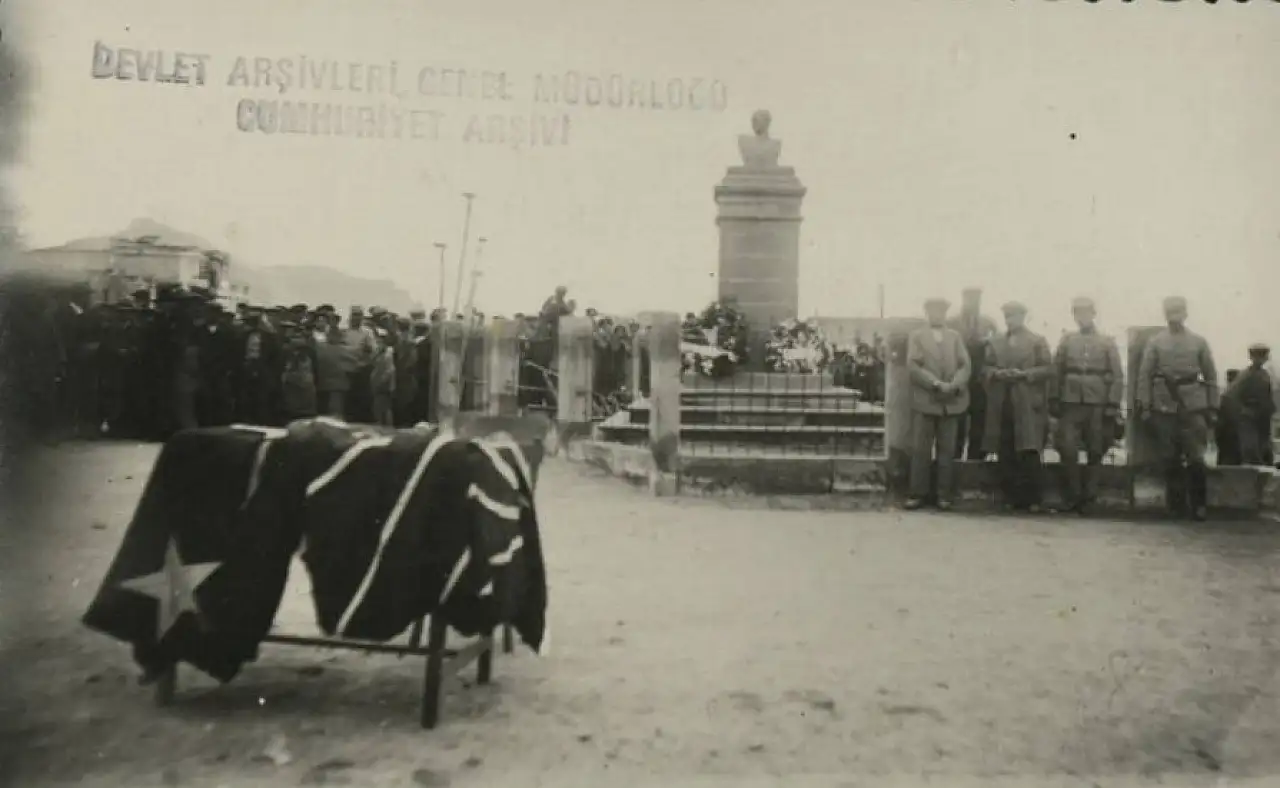 Kayseri'nin kırsal ilçelerinden olan Develi'de 87 yıl öncesine ait fotoğraflar arşivden çıkarıldı. Mustafa Kemal Atatürk'ün vefatının ardından düzenlenen törene ait fotoğraflar yayınlanırken, arkalarında yer alan notlar da dikkat çekti.