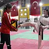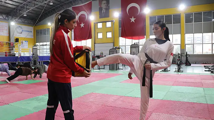 Kayseri'de 4'üncü sınıf antrenörlük öğrencisi Nazlıcan Tekel, tekvandoda şampiyon olma yolunda çalıştırıyor.
