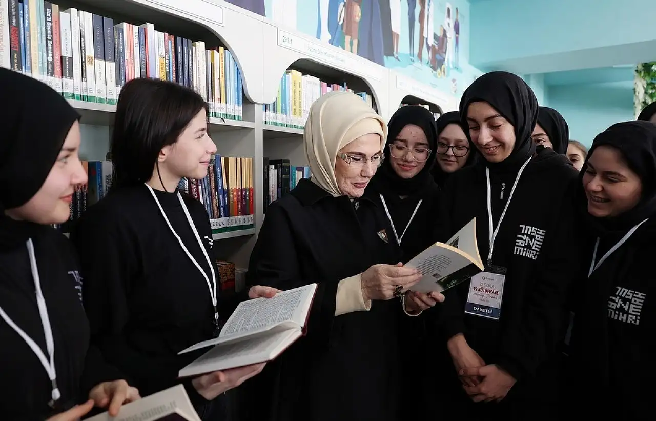 Emine Erdoğan, sosyal medya hesabından yaptığı paylaşımda 22 okul kütüphanesinin açılışını gerçekleştirmenin mutluluğunu yaşadıklarını belirterek, modern kütüphanecilik anlayışıyla tasarlanan bu alanların millet ve çocuklar için hayırlı olmasını temenni etti.