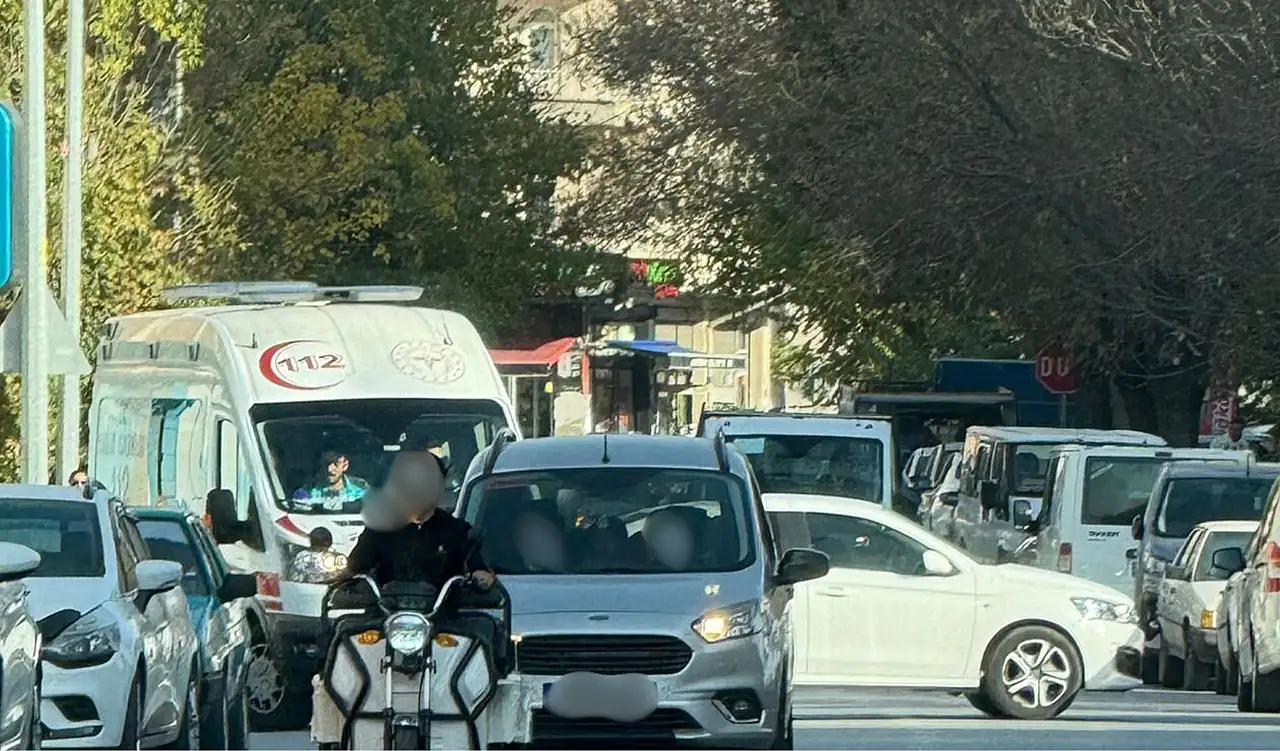 Ambulans kaldırıma çıkarak yoluna devam edebildi!