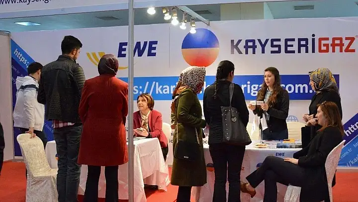 Kayserigaz yetkilileri, Kayseri İnsan Kaynakları ve İstihdam Fuarı'nda(KAYİF) iş arayan ve staj yapmak isteyen ziyaretçilere şirketin sunduğu imkanlarla ilgili bilgi verdi.