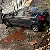 Yozgat’ta kontrolden çıkan otomobil, yaklaşık 2 metre yükseklikten apartman bahçesine düştü.