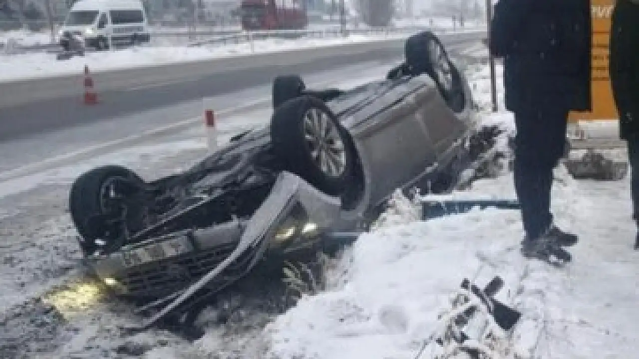 Nevşehir-Aksaray karayolunda buzlanma nedeniyle kontrolden çıkan bir otomobilin takla attığı o dehşet anları saniye saniye görüntülendi!