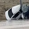 Araç direğe saplandı, genç sürücü ağır yaralandı