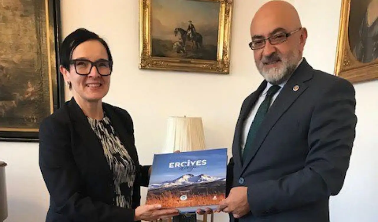 Büyükelçi’nin öncesinde Kayseri’ye geldiğini ifade eden Kayserili vekil, “Avusturya Büyükelçisi Erciyes A.Ş. Başkanlığımız döneminde Avrupa Birliği’nin ülkemizdeki misyonları arasında düzenlediğimiz ‘Diplomat Race’ etkinliği vesilesiyle Erciyes’e geldiğini ve çok beğendiğini vurguladı. Hatta ‘sönmüş bir volkan olan Erciyes’i kalbime çok yakın hissediyorum’ sözleri gerçekten samimi ve anlamlıydı. Snow Magazine dergisinin Erciyes’i dünyanın en iyi 25 kayak destinasyonu arasında göstermesinin Türkiye adına büyük bir gurur kaynağı olduğunu ifade ettiğimde Sayın Büyükelçi bu başarıdan duyduğu memnuniyeti dile getirdi” dedi.