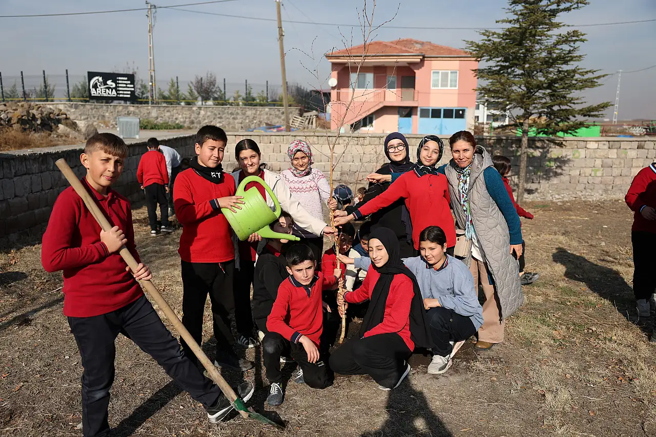 Başkan Özdoğan öğrencilerle ağaç dikti