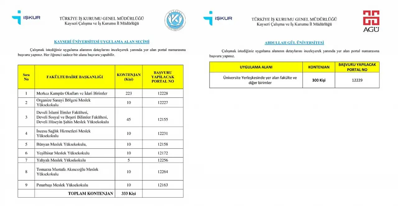Program kapsamında en yüksek kontenjan, 1.903 kişi ile Erciyes Üniversitesi'ne ayrıldı ve bu alımlar 22 farklı fakülte ve birimde yapılacak. Kayseri Üniversitesi için belirlenen kontenjan sayısı 333 kişi iken, Abdullah Gül Üniversitesi için kontenjan 300 kişi olarak duyuruldu.