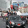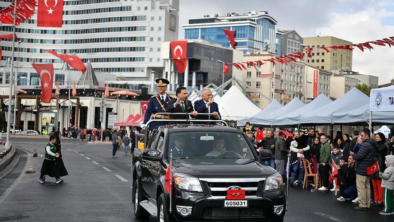 29 Ekim Cumhuriyet Bayramı kutlamalar Vali Gökmen Çiçek ve Büyükşehir Belediye Başkanı Memduh Büyükkılıç ile Garnizon Komutanı Hava Pilot Tümgeneral Kadircan Kottaş, tören arabasında halkı selamladı.