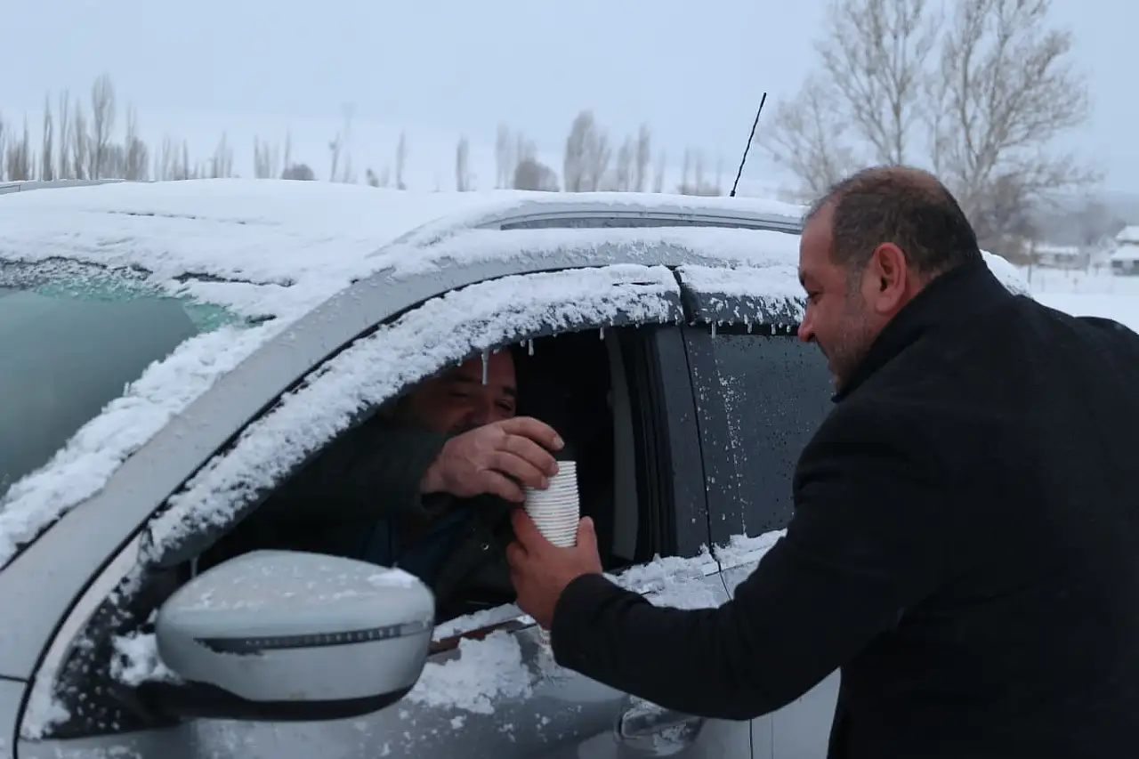 Kayseri’nin Bünyan ilçesinde etkili olan yoğun kar yağışı hayatı olumsuz etkilerken, Bünyan Belediyesi sahada görev yapan ekipleri ve yolda kalan vatandaşları yalnız bırakmayarak, ikramda bulundu.