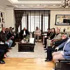 Cumhuriyet Halk Partili (CHP) isimlerden AK Partili Başkana ziyaret. Bir süre önce yapılan ilçe kongresinin ardından göreve seçilen CHP Talas İlçe Başkanı Ergün Canbulat ve beraberindeki CHP Talas Belediyesi Meclis Üyeleri Mustafa Çalıksoy, Alaattin Can Akkılınç, Hülya Yüksel ile ilçe yönetim kurulu üyelerine Talas Belediye Başkanı Mustafa Yalçın'ı ziyaret etti. CHP'li isimlerle bri süre görüşen Yalçın, ‘Nazik ziyaretlerinden dolayı teşekkür ediyorum’ dedi.