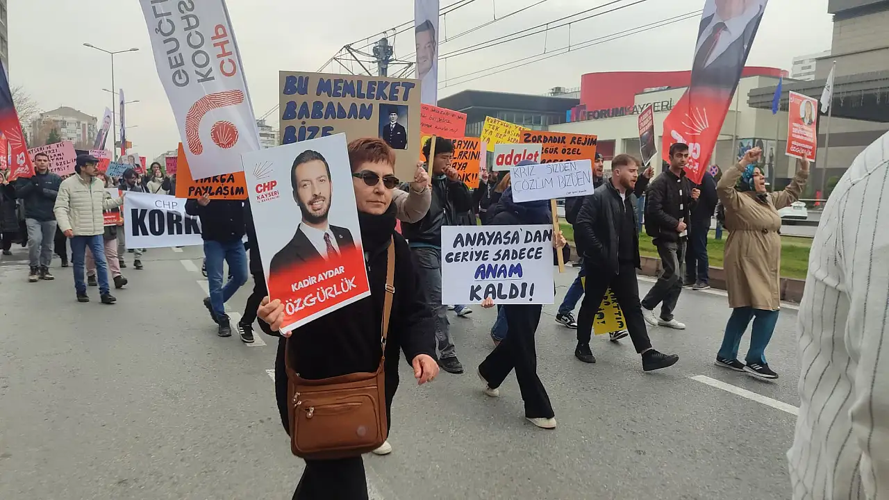 CHP Kayseri Gençlik Kolları Sivas Bulvarı’ndan başlayan yürüyüşte sloganlar atarken, ‘kırlangıç’larda ise tutuklu bulunan başkanların fotoğraflarına yer verildi. Yürüyüşte ‘hak hukuk adalet’ sloganları ile Kayseri Cumhuriyet Meydanı’na gidildi.