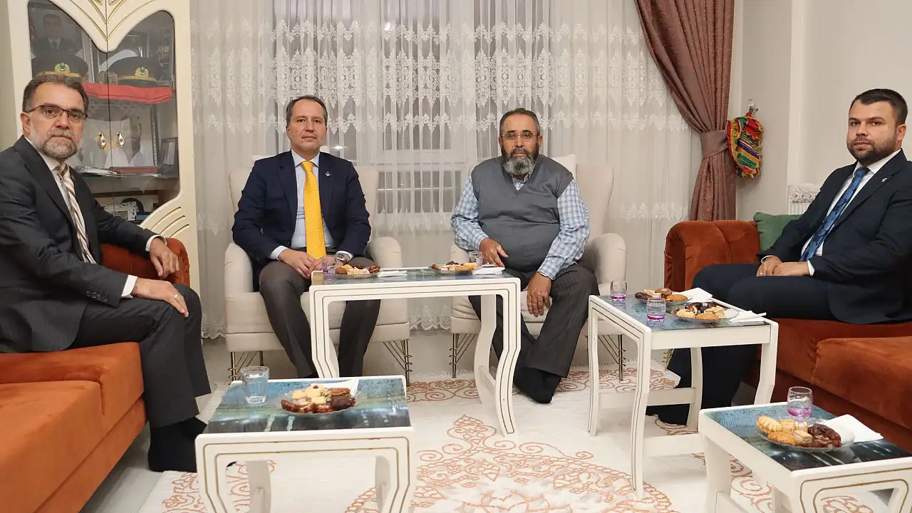 Yeniden Refah Partisi Genel Başkanı Fatih Erbakan, Kayseri'de Pençe Kilit şehidi Üsteğmen Ömer Delibaş'ın ailesini ziyaret etti.