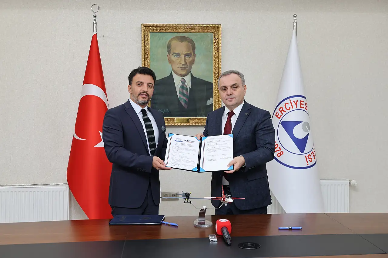 Erciyes Üniversitesi (ERÜ) ile TOMTAŞ Havacılık ve Teknoloji A.Ş. arasında iş birliği protokolü imzalandı.
