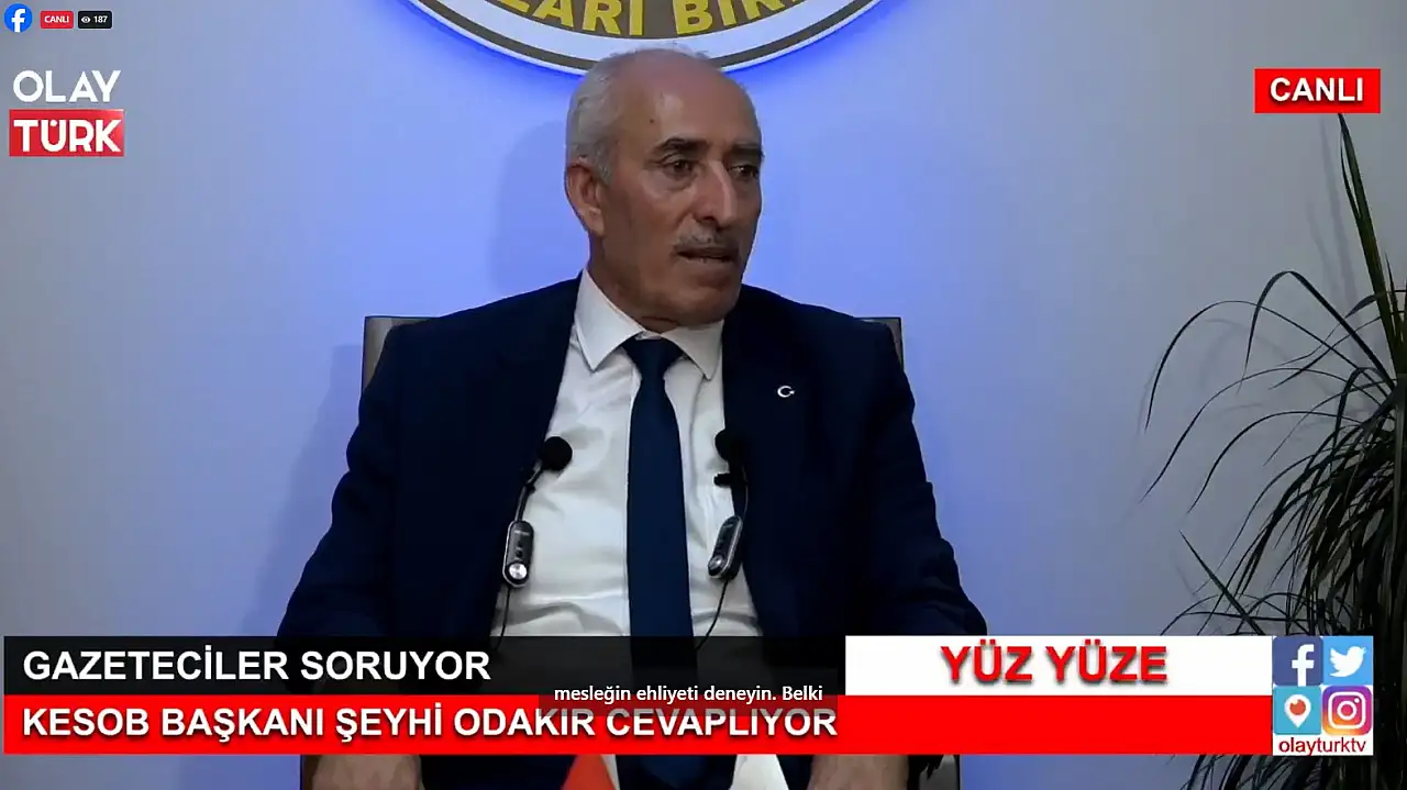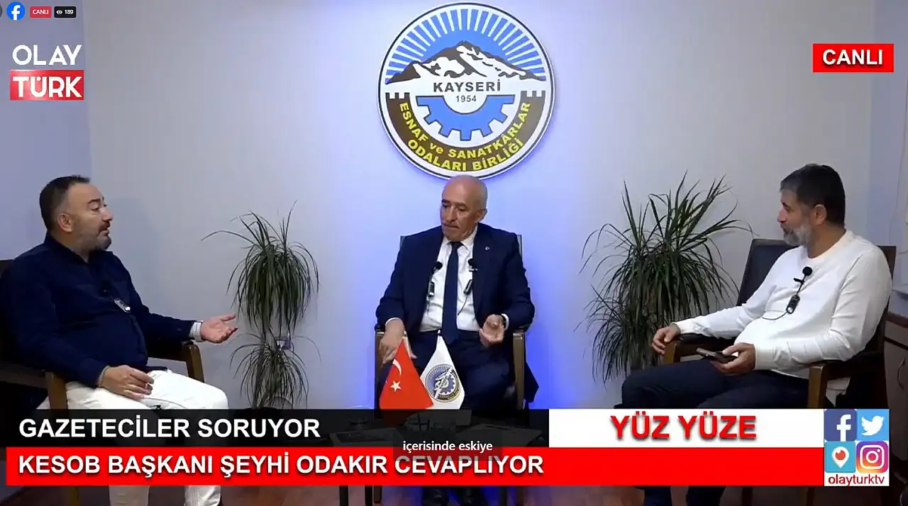 Olay Türk TV ekranlarında yayınlanan Yüz Yüze programının bu haftaki konuğu KESOB Başkanı Şeyhi Odabakır oldu. Başkan Odabakır, Gazeteciler Osman Çiftci ile Cem Atakan'ın sorularını yanıtladı.