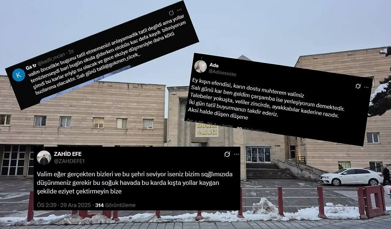 Kayseri Valisi Gökmen Çiçek’in bugün yaptığı paylaşımların altında yer alan yorumlar dikkat çekerken, öğrencilerin tatil isteği gözden kaçmadı. “Valim çok soğuk yerler buz gitmeye zorlanıyoruz lütfen bizi duşunun yarın tatil bekliyoruz” ve “Valim kar yağışı devam ediyor gece -12’ye kadar çıkacak yerler buzlanır nolursunuz tatil yapalım” şeklinde yorumların yapıldığı görülürken şu ana kadar herhangi bir açıklama yapılmadı.