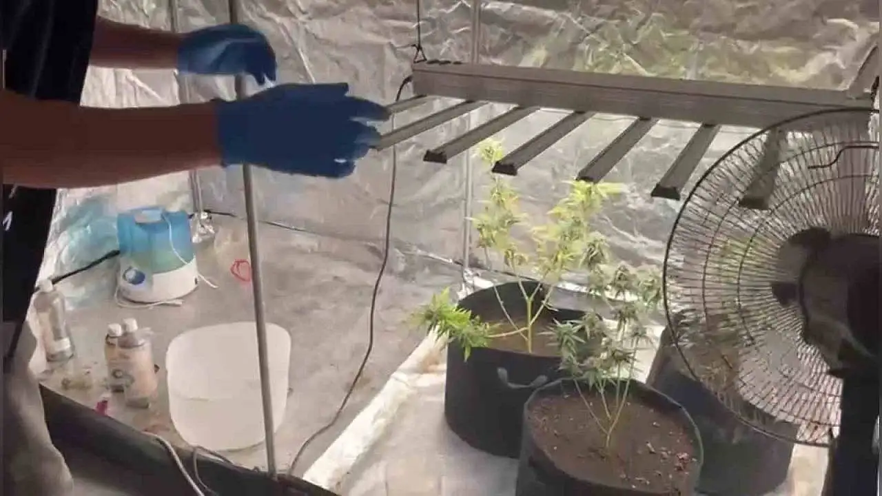 Kiraladığı evde kurduğu iklimlendirme sistemi ile uyuşturucu yetiştiren şüpheli yakalandı.