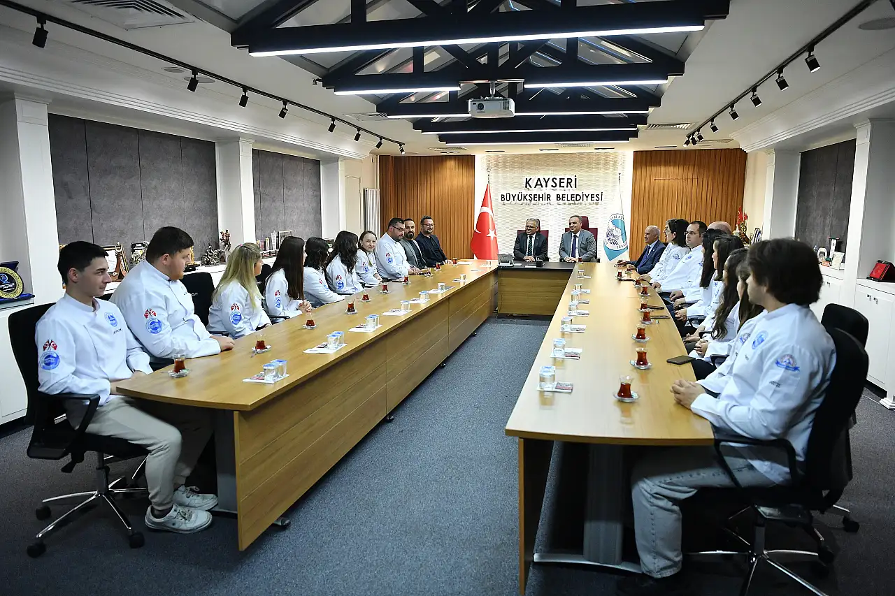YÖK Başkanı Prof. Dr. Özvar’ı Mutfak Sanatları Merkezi’nde ağırlamak istediklerini de söyleyen Başkan Büyükkılıç, ayrıca düzenlenecek olan Kayseri Gastronomi Günleri’ne de davet etmeyi ihmal etmedi.