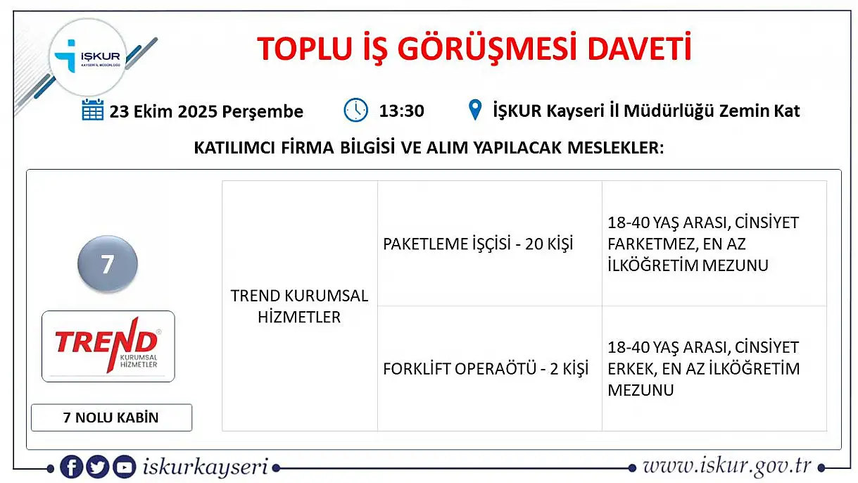 Haberler Güncel İş görüşme daveti: 22 firma, 363 kişiyi işe alacak! İş görüşme daveti: 22 firma, 363 kişiyi işe alacak! Kayseri'de iş arayanlar dikkat! İŞKUR, 22 firmanın katılımıyla 363 kişilik toplu iş görüşmesi düzenliyor. işkur kayseri PAYLAŞ 17.10.2025 18:38 Güncelleme: 17.10.2025 18:38 Rıdvan Mahmut BoyrazMuhabir TAKİP ET >> 8 23 PAYLAŞ Trend Kurumsal Hizmetler: Paketleme işçisi, forklift operatörü… Toplam 22 kişi