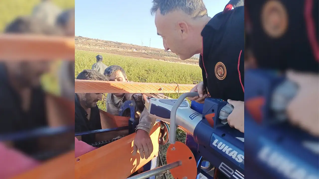 Kahramanmaraş’ta tarlada çalışırken kolu hortum sarma makinesine sıkışan bir kişi itfaiye ekipleri tarafından kurtarıldı.
