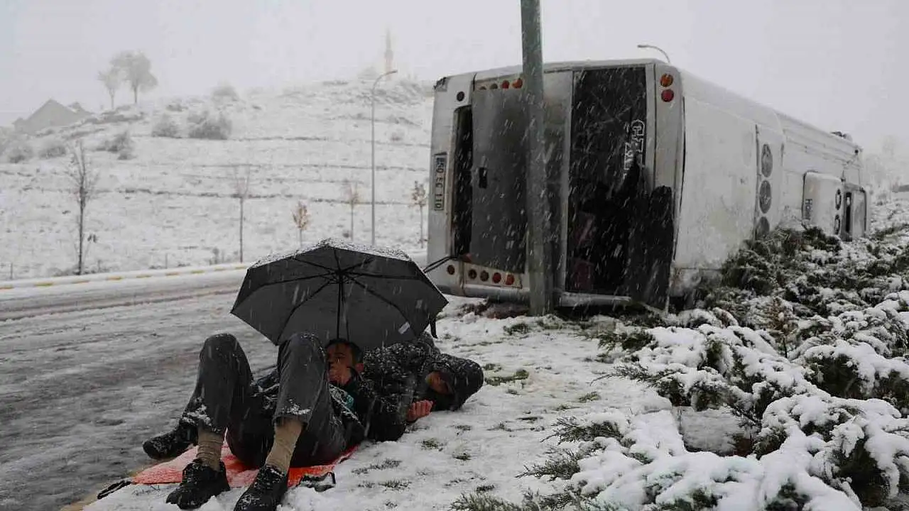 Edinilen bilgiye göre, Mehmet Akif Ersoy Mahallesi Kayaşehir yolu mevkide meydana gelen kazada, rampa aşağı inen A.A. idaresindeki 50 EC 110 plakalı işçi servisi buzlanma nedeni ile kayganlaşan yolda sürücüsünün direksiyon hakimiyetini kaybetmesi sonucu takla attı. Refüje çarparak duran işçi servis aracında bulunan 14 kişi yaralanırken, haber verilmesi üzerine olay yerine sağlık, polis, itfaiye ve AFAD ekipleri sevk edildi.