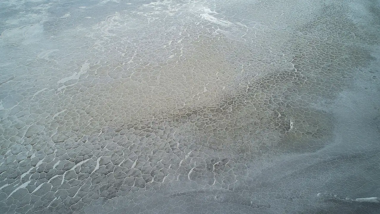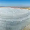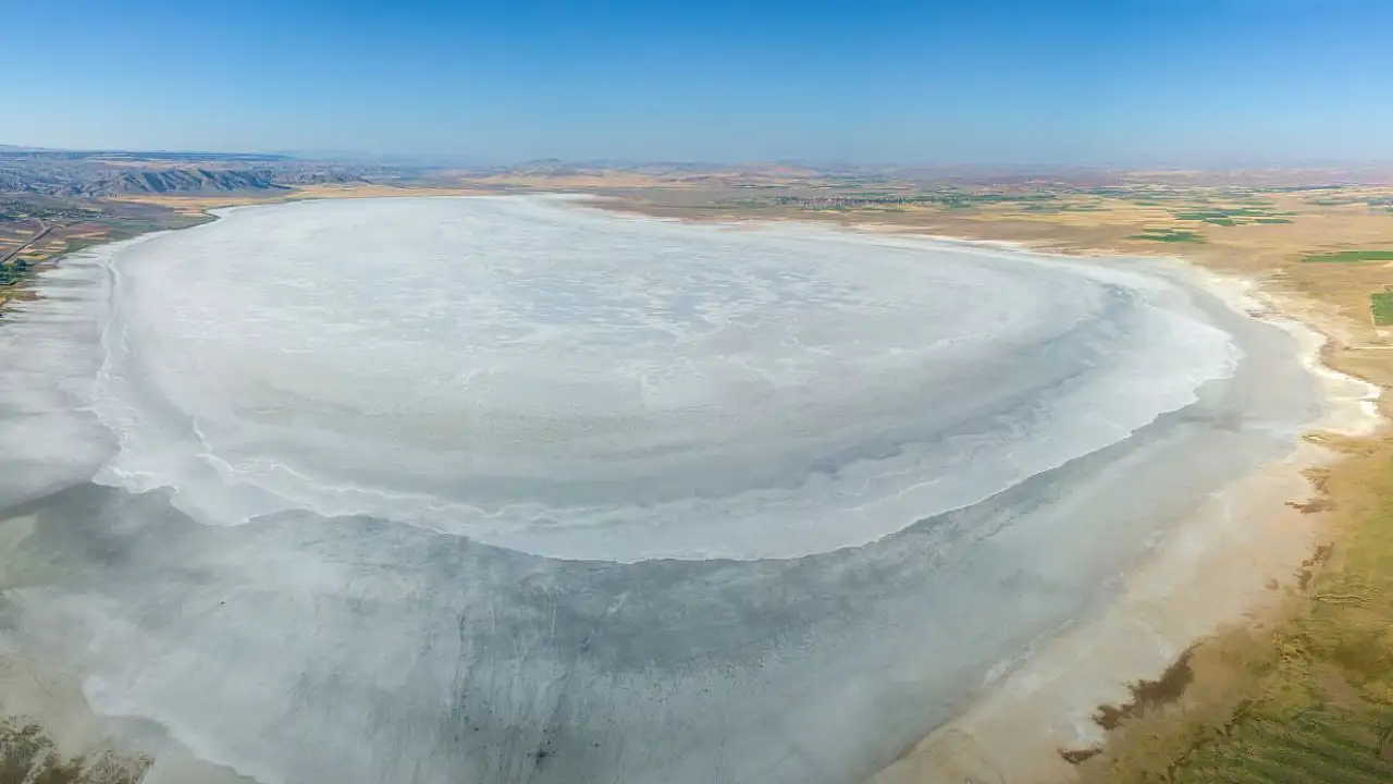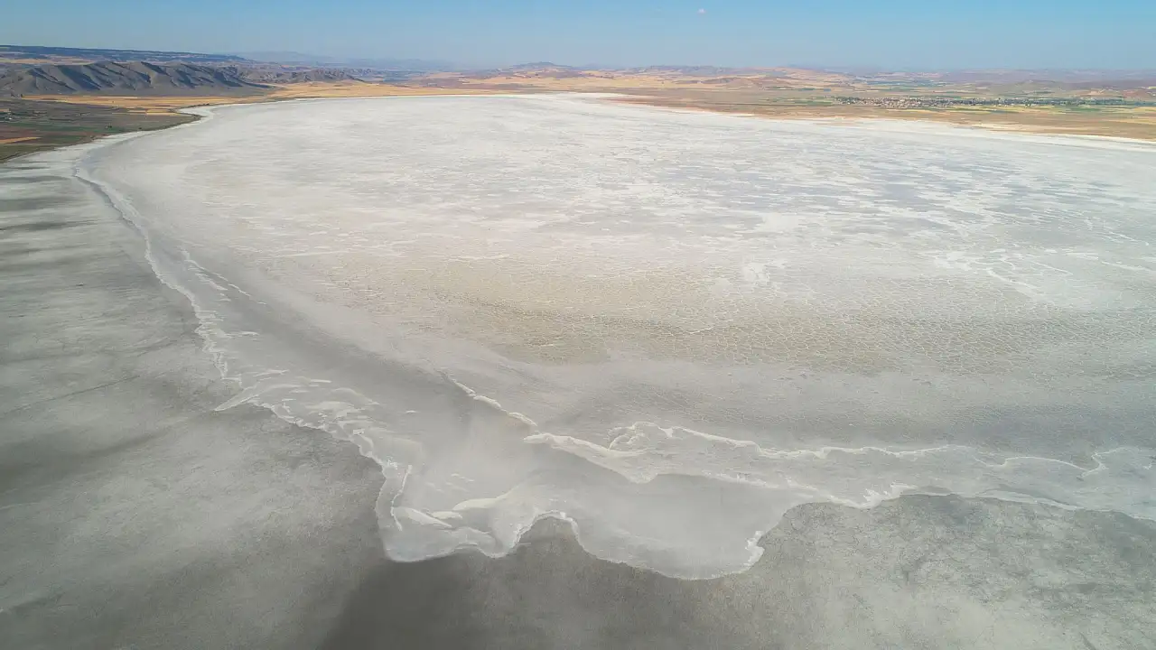 Göl suyunun çekildiği alanlarda tuz tabakası oluşuyor