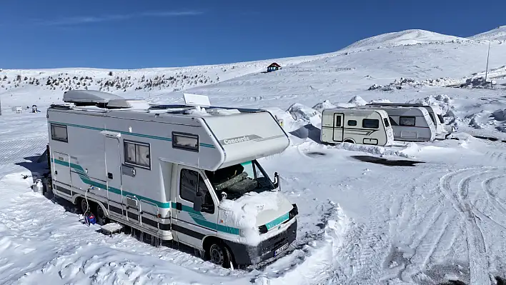 Türkiye'nin önemli kayak merkezlerinden Erciyes, kayak yapmak isteyen karavan tutkunlarını da misafir ediyor.