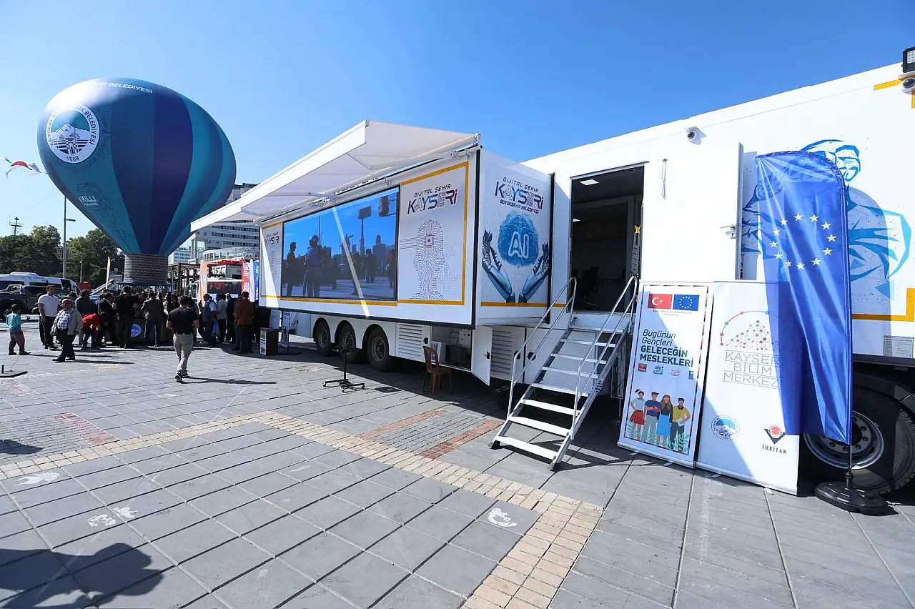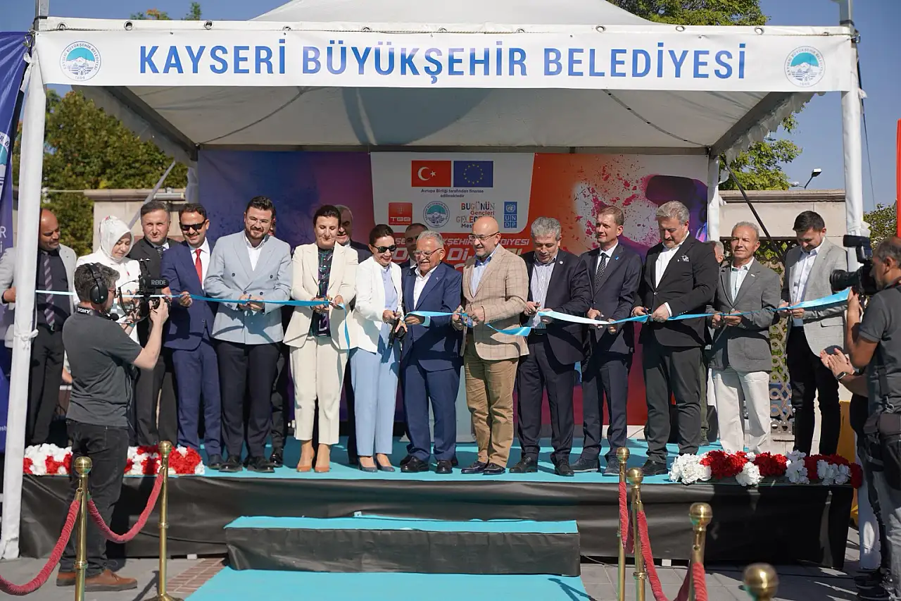 Kayseri Büyükşehir Belediyesi’nin, Birleşmiş Milletler (BM), Avrupa Birliği (AB) ve Türkiye Belediyeler Birliği (TBB) iş birliğinde hayata geçirdiği Mobil Dijital Gençlik Merkezi düzenlenen törenle hizmete girdi. Cumhuriyet Meydanı’nda düzenlene törene AK Parti Kayseri Milletvekilleri Murat Cahid Cıngı, Sayın Bayar Özsoy, Birleşmiş Milletler Kalkınma Programı Proje Yöneticisi Devrim Şavlı, Türkiye Belediyeler Birliği Genel Sekreter Yardımcısı Dr. Şengül Altan Arslan, AK Parti İl Başkanı Hüseyin Okandan, ilçe belediye başkanları ve gençler katıldı.