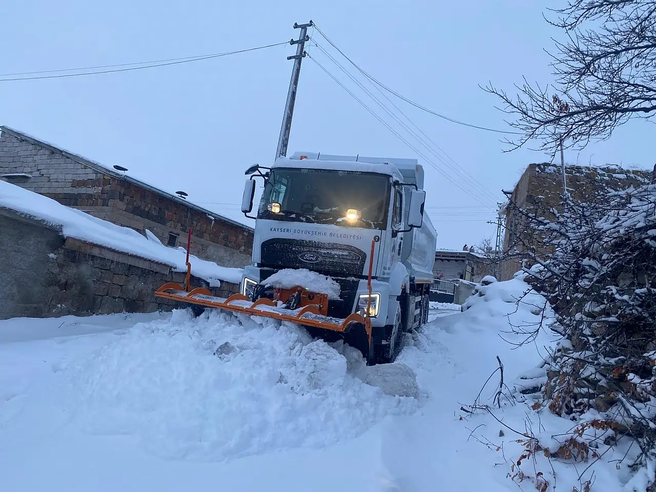 Kayseri Büyükşehir Belediyesi ekipleri, yaklaşık 6 saatte 12 ilçede 2 bin 296 kilometrelik yol ağında 285 mahalle yolunu ulaşıma açtı.
