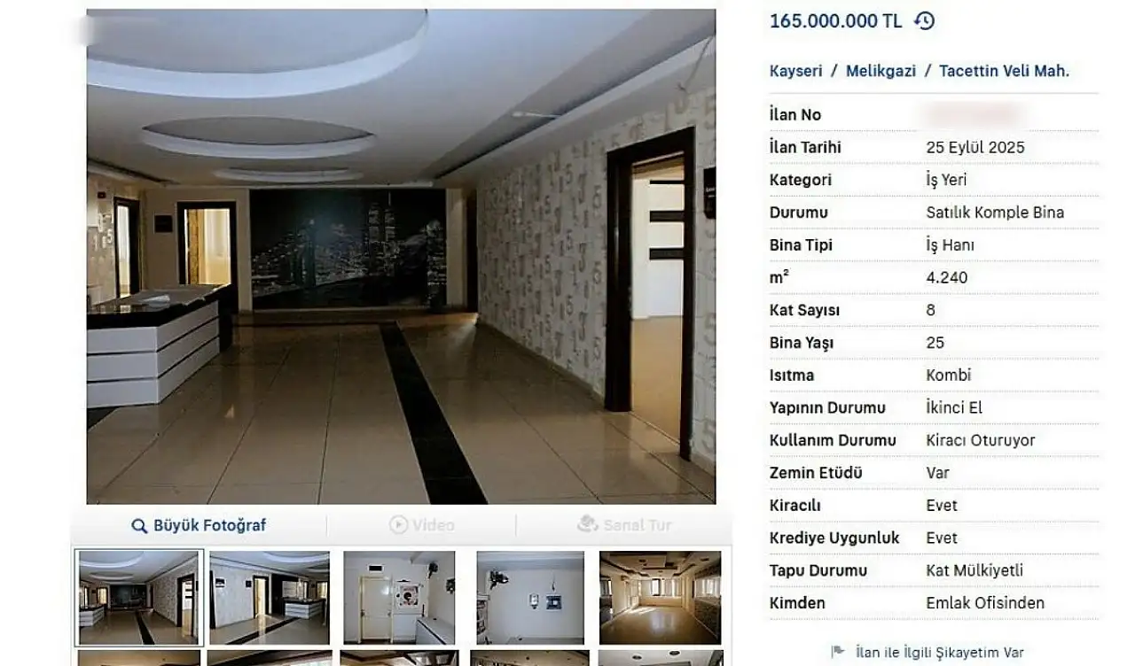 Kayseri’de vatandaşların sık sık ziyaret ettiği ilan sitesinde bu kez 8 katlı ticaret merkezinin satıldığı görüldü. Bünyesinde farklı marketler ve düğün salonunu kiracı olarak bulunduran ticaret merkezinin satışı ilgi çekerken binanın tüm otobüs hatlarının da yanında olduğu açıklamalarda belirtildi.