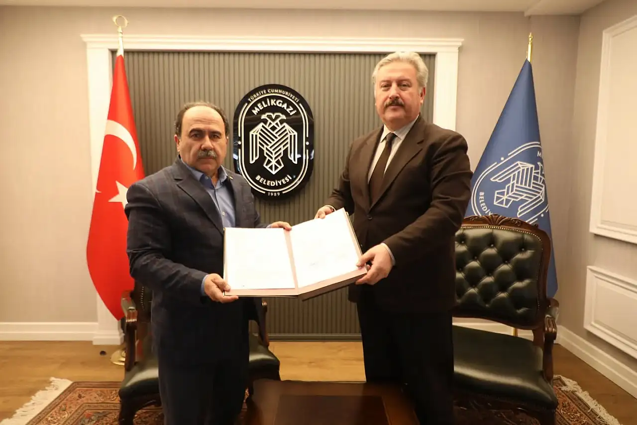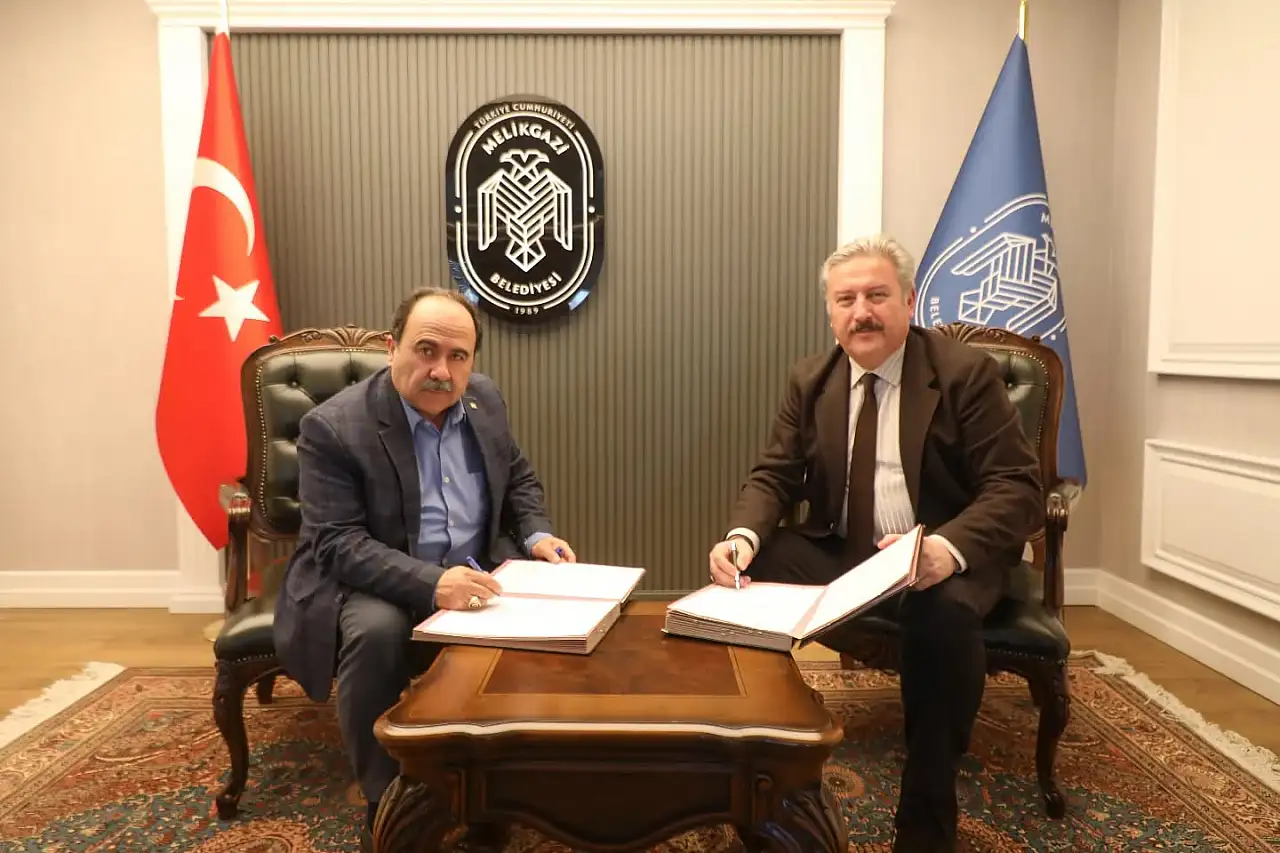 Melikgazi Belediye başkanlık makamında gerçekleşen imza töreninde Belediye Başkanı Mustafa Palancıoğlu ve Bem-Bir-Sen Kayseri Şube Başkanı Mehmet Karakaş katıldı.
