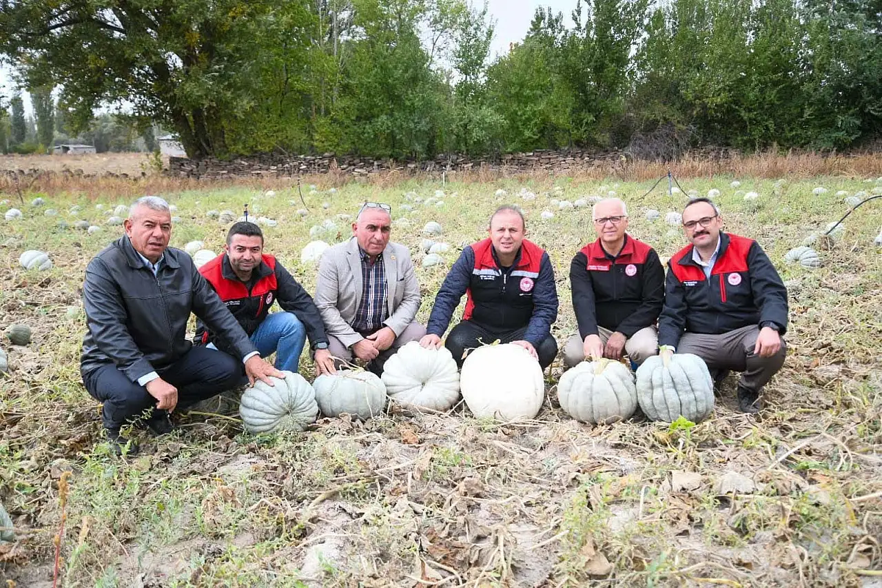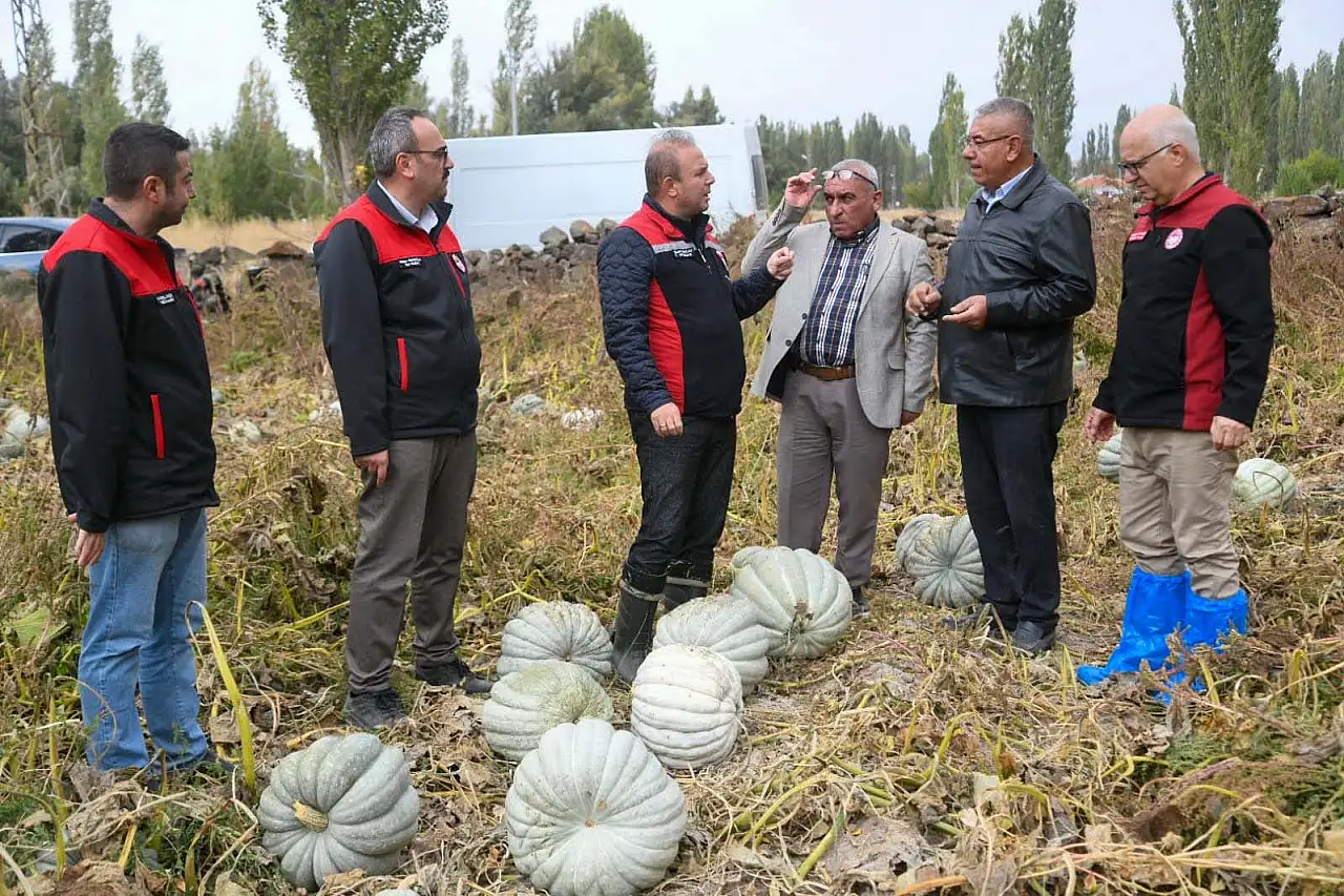 Develi’de çerezlik kaba üreticileri yaşadıkları sorunları anlatırken bu kez balkabağı için harekete geçildi. Yağmurlama sulama yöntemi ile üretilen kabakların hasadı başlarken Kayseri İl Tarım ve Orman Müdürü Bülent Saklav’da eşlik etti.