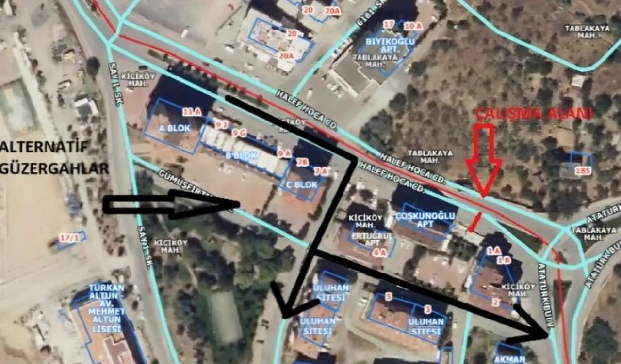 “Kayseri Büyükşehir Belediyesi tarafından yürütülen çalışmalar kapsamında; Halef Hoca Caddesi ile Atatürk Bulvarı kesişimindeki yol, asfalt bakım onarım çalışmaları doğrultusunda 12.02.2026 Perşembe günü saat 09.00'da taşıt trafiğine kapatılacaktır. Çalışmaların 12.02.2026 Perşembe günü saat 18.00’de tamamlanıp, kapatılan yolun taşıt trafiğine açılması planlanmaktadır.”