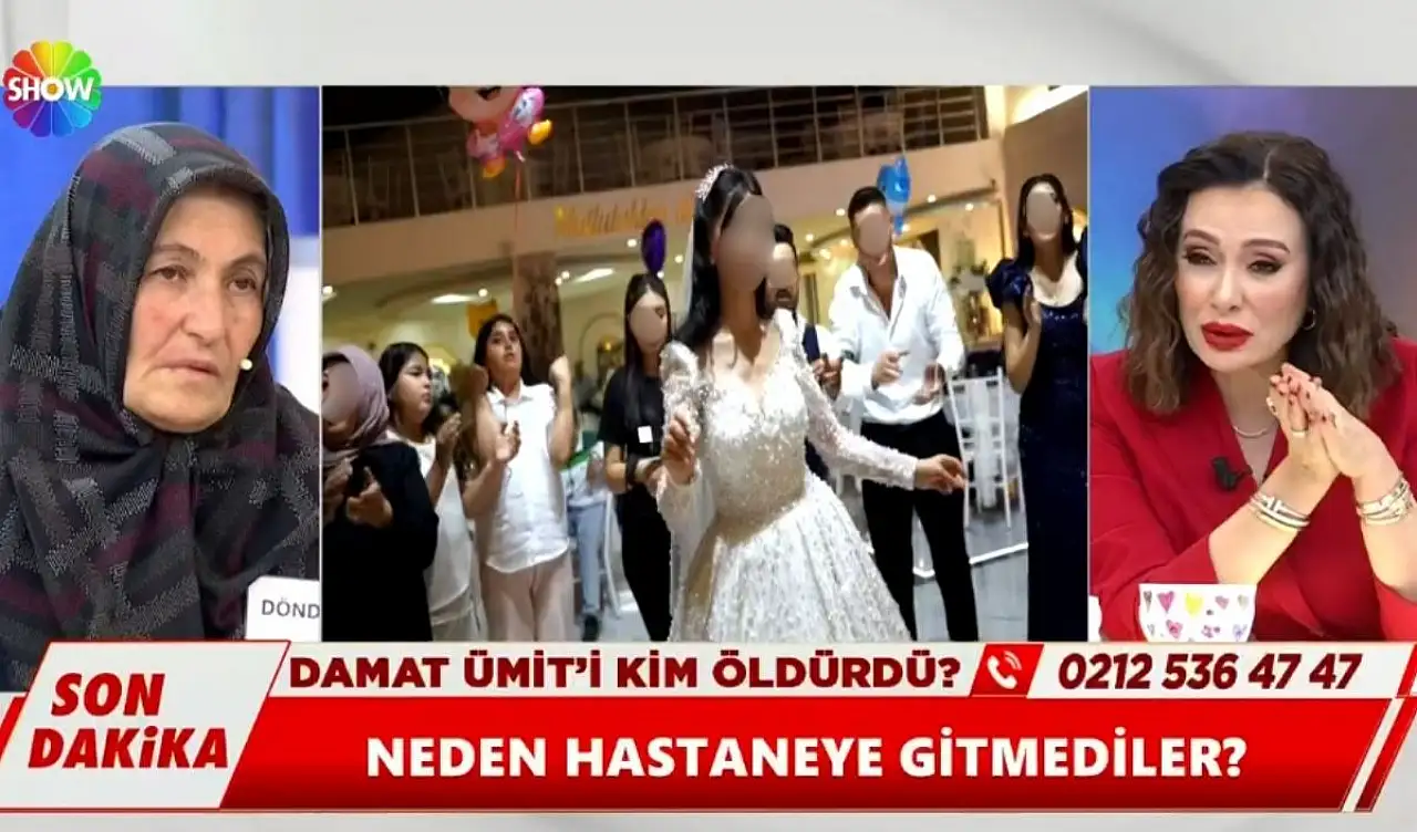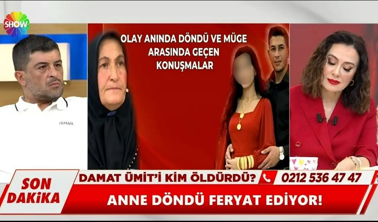 Program sunucusu Didem Arslan Yılmaz Ümit Canpolat’ın ailesine olayı nasıl öğrendiğini sorarken annesi, “Müge beni aradı. ‘Ümit kendini vurdu koşun yetişin’ dedi” ifadelerini kullandı. Ümit Canpolat’ın babası ise ilk eve girdiklerinde, gelin Müge’nin saçlarının dağınık olduğunu belirtti.