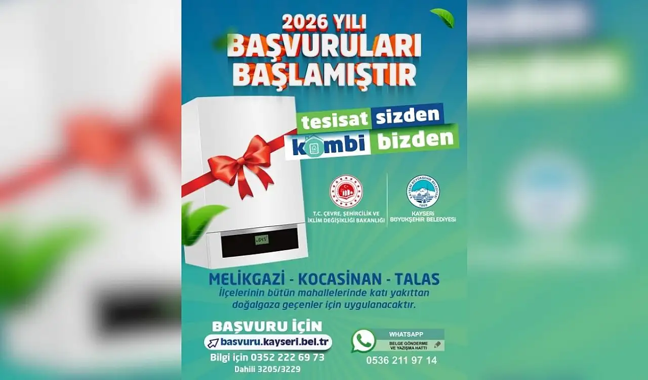 Kayseri Büyükşehir Belediyesi, çevre kirliliğini azaltmak amacı ile çalışmalarına devam ediyor. Geçtiğimiz yıllarda düzenlenen birçok vatandaşın da yararlandığı 'Tesisat Sizden Kombi Bizden' kampanyası başlarken, bu proje belirli ilçeleri kapsıyor.