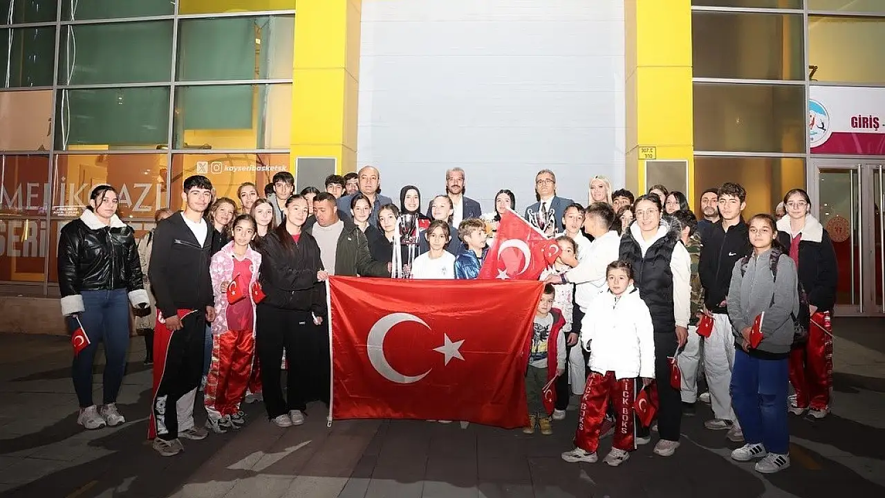 2025 Kickboks Dünya Kupası'nda çifte dünya şampiyonluğu kazanan Kayserili sporcu Elif Ceren Uzunçakmak, kentte coşkuyla karşılandı.