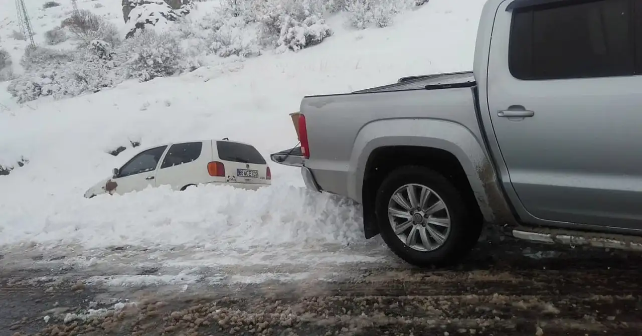 Kayseri'de kar yağışı nedeniyle kayganlaşan yolda bir otomobil kaza yaptı. Sürücünün imdadına Yahyalı Belediyesi ekipleri yetişti.