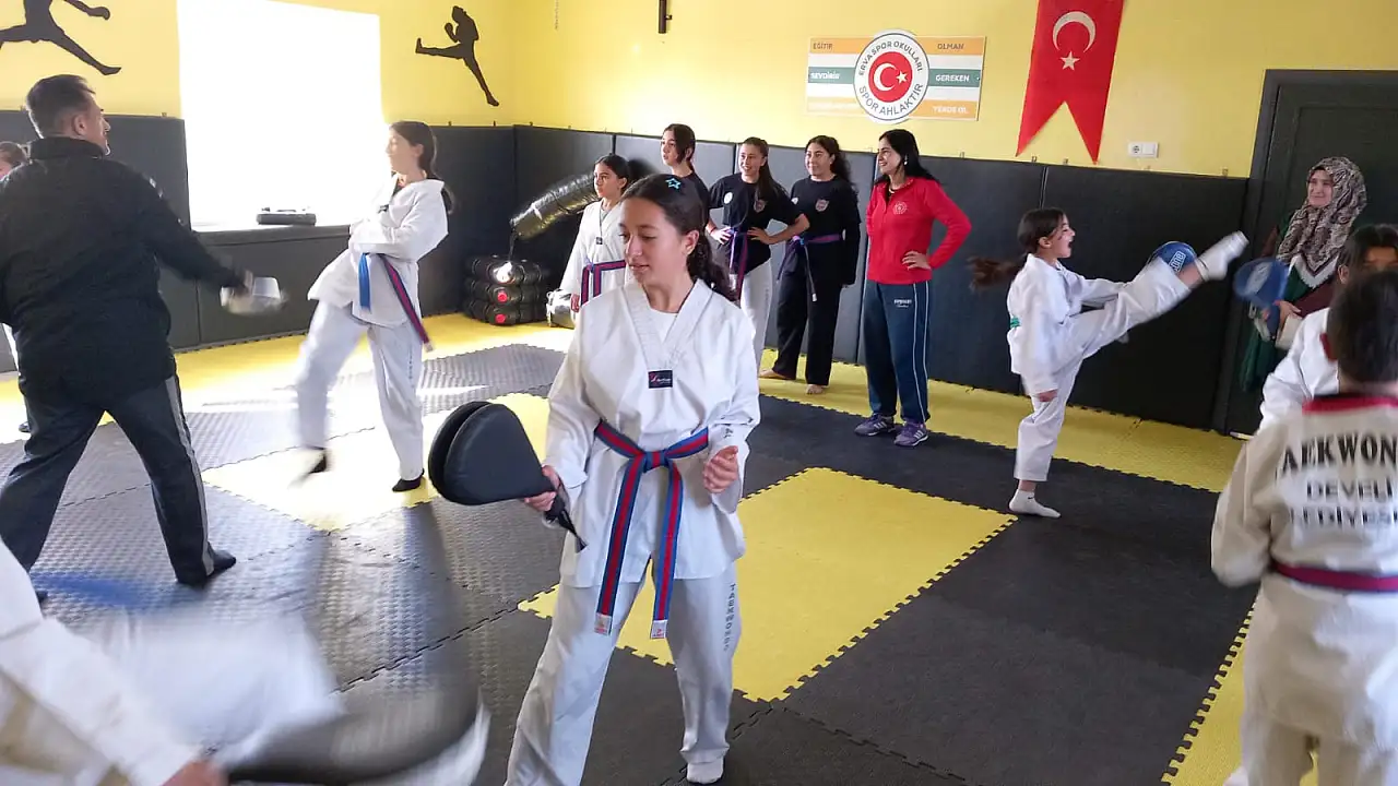 Eğitimlerin devam ettiği Sindelhöyük ERVA Spor Okulu’nu Gençlik ve Spor ilçe Müdürü Adem Demir ile Kayseri Taekwondo il Temsilcisi Özben Şimşek ziyaret etti. Yapılan çalışmalar yerinde izlenirken, öğrencilerle de bir araya gelindi.