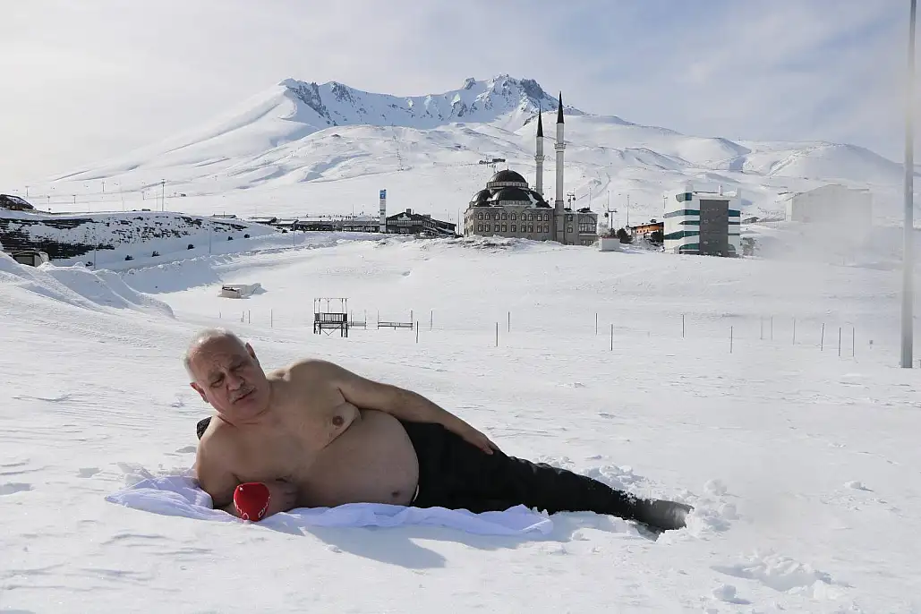 Kayseri'de gören adeta dondu kaldı! Eksi 5 derece soyundu, kara uzandı. Davut Güleç, kışı ortasında 2 bin 200 metre yükseklikte yaptığı hareket ile dikkat çekti. Detaylar Kayseri Olay'da.