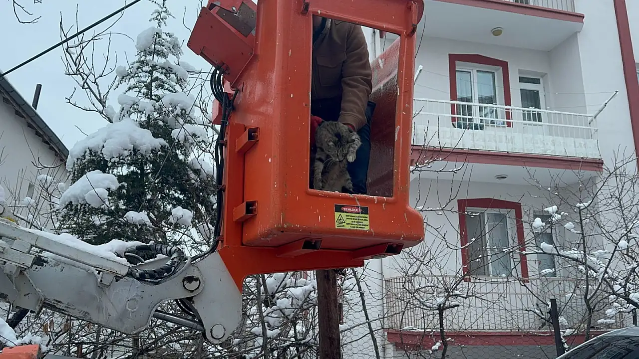 Kayseri’de Develi Belediyesi’ne yapılan ihbarın ardından kısa sürede harekete geçildi. Telefon direğinde mahsur kalan kediyi kurtarmak için ekipler olay yerine giderken, Belediye Başkanı Adem Şengül’ün talimat verdiği öğrenildi.