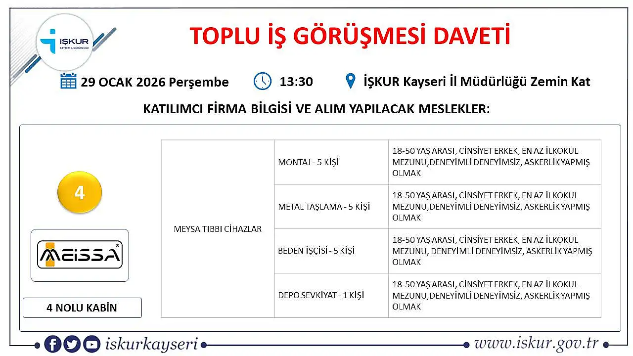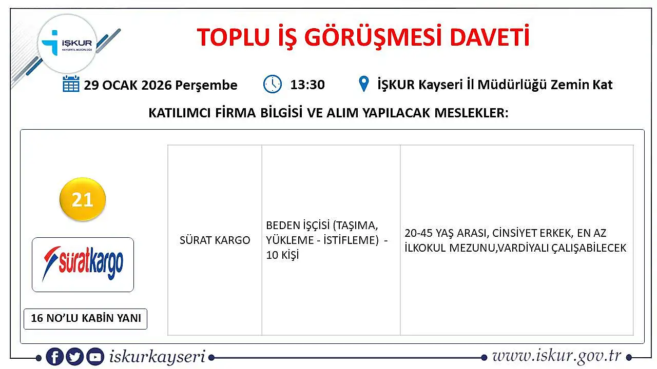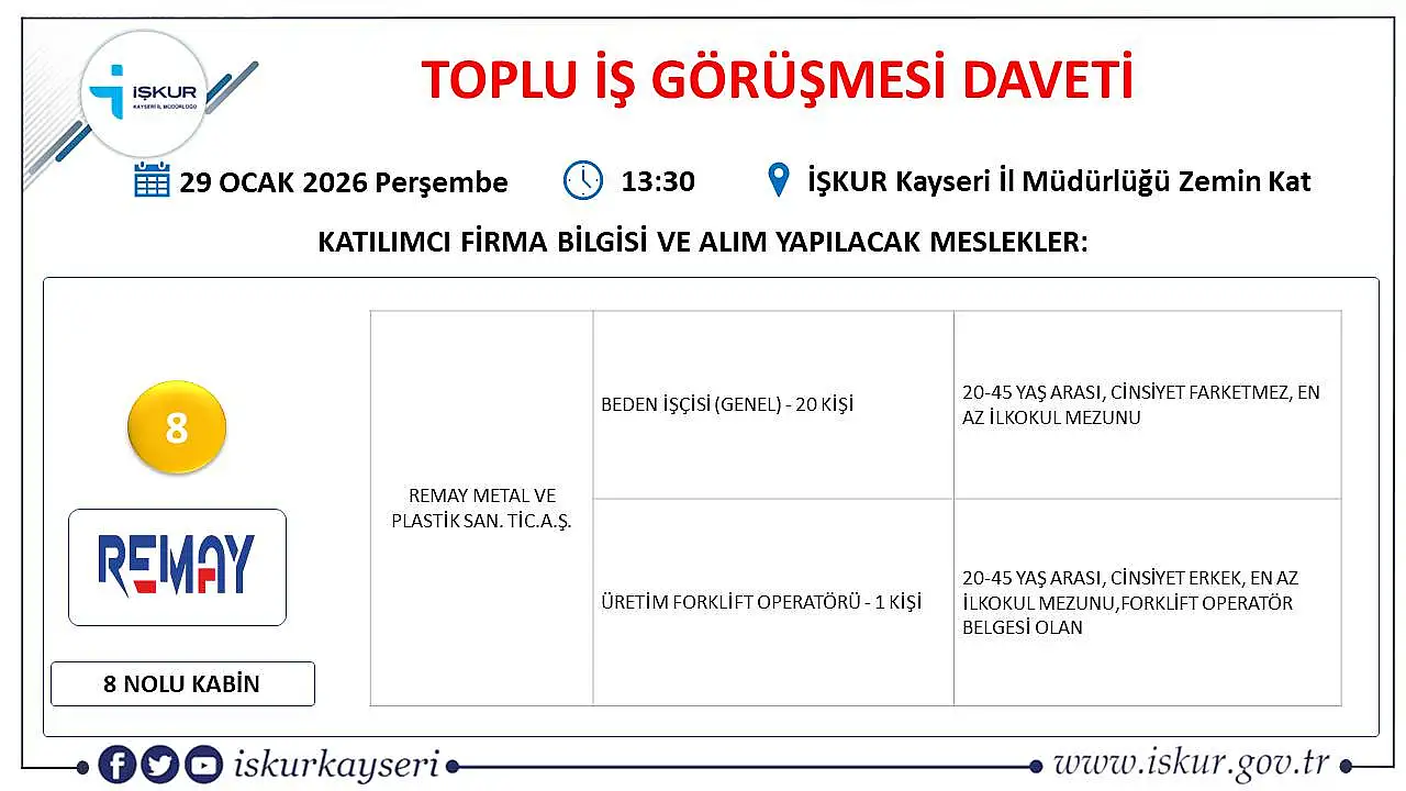 Kayseri'de iş arayanlara müjde! 492 kişi alınacak, görüşmelere saatler kaldı