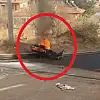 Kayseri'de kaygan yolda devrilen motosiklet alev aldı