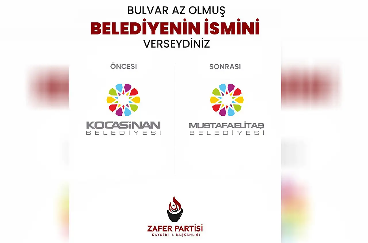 Zafer Partisi Kayseri İl Başkanlığından yapılan açıklamada, ayrıca bir görsel paylaşıldı. Söz konusu görselde ‘Bulvar az olmuş, Belediyenin ismini verseydiniz’ ibaresinin de yer alması dikkat çekti.