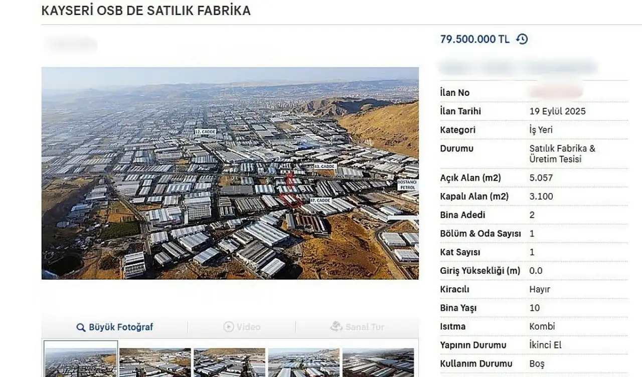 Kayseri'de vatandaşlar bütçelerine uygun konut ya da araç arayışına devam ederken satışa çıkan fabrikalar ilgi çekiyor. Organize Sanayi Bölgesi'nde farklı fabrikaların satıldığı görülürken, bu kez mobilya üretimi yapılan tesis ilana koyuldu.