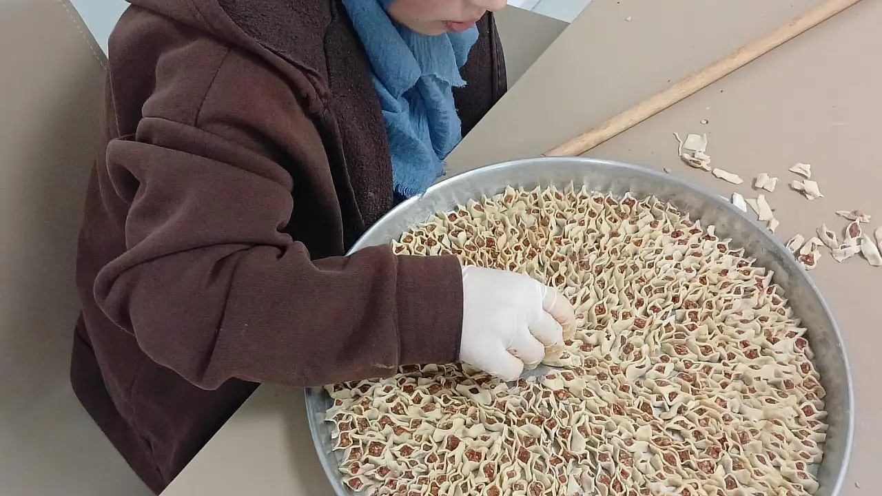 Kayseri'nin Tomarza ilçesinde Mevlüt Kahraman Kız Yurdu'nda kalan öğrenciler ilçenin yöresel yemeklerini yapmak için kılları sıvadı. Öğrenciler tepsi mantısı yaptı. Detaylar Kayseri Olay'ın haberinde.