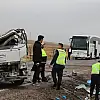 Kayseri'de kamyonetin kontrolünü kaybederek refüje devrilmesinin ardından duran yolcu otobüsüne arkadan gelen tır çarptı.