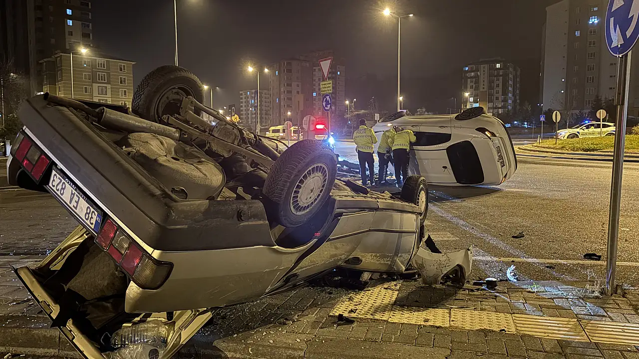 - Kayseri'de ortalık savaş alanına döndü: Otomobillerden biri yan yattı, diğeri takla attı