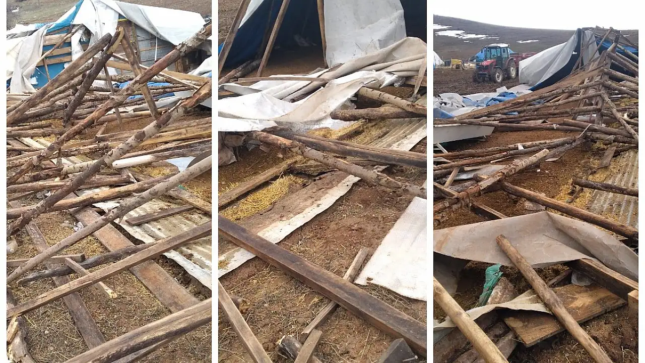 Çadırlar ve ahır rüzgardan zarar gördü