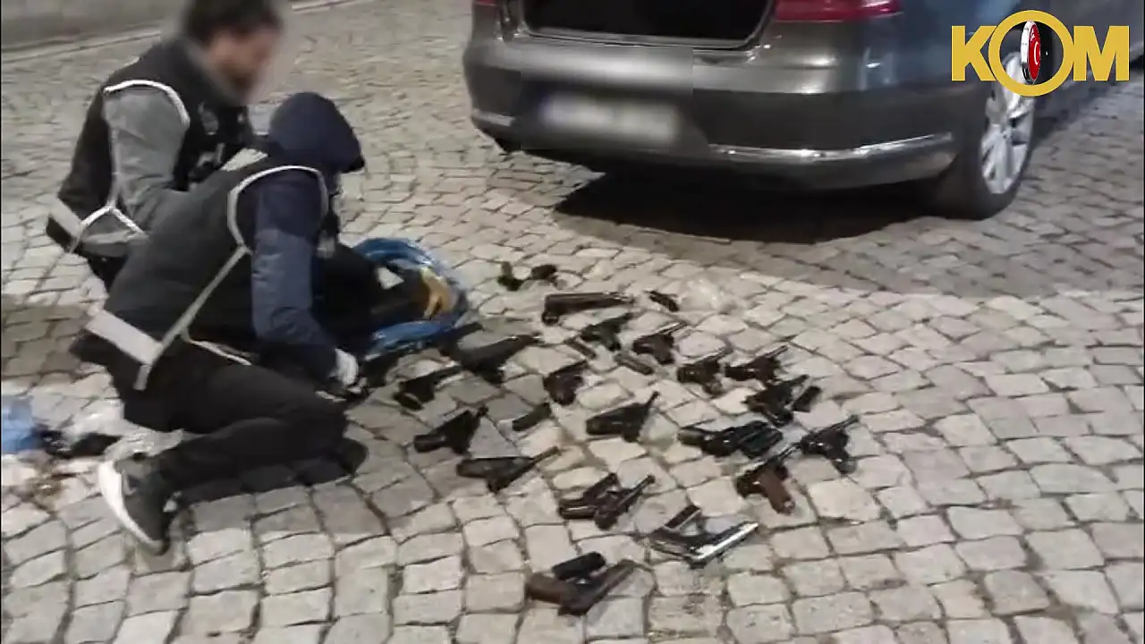 Yapılan aramalarda suikast silahı olarak bilinen 2 adet UZİ hafif makineli tüfek ve 22 adet ruhsatsız tabanca olmak üzere toplam 24 adet ruhsatsız silah ele geçirildi.